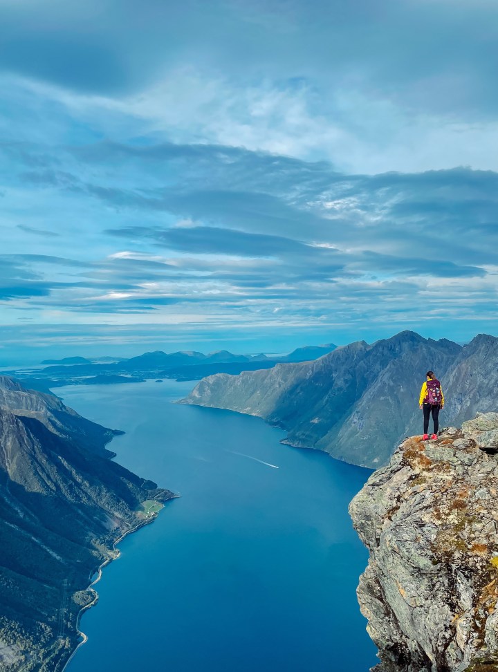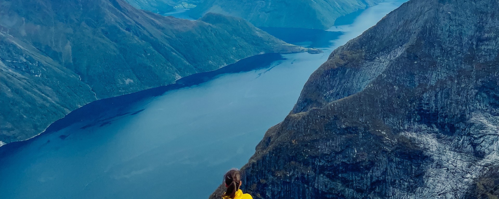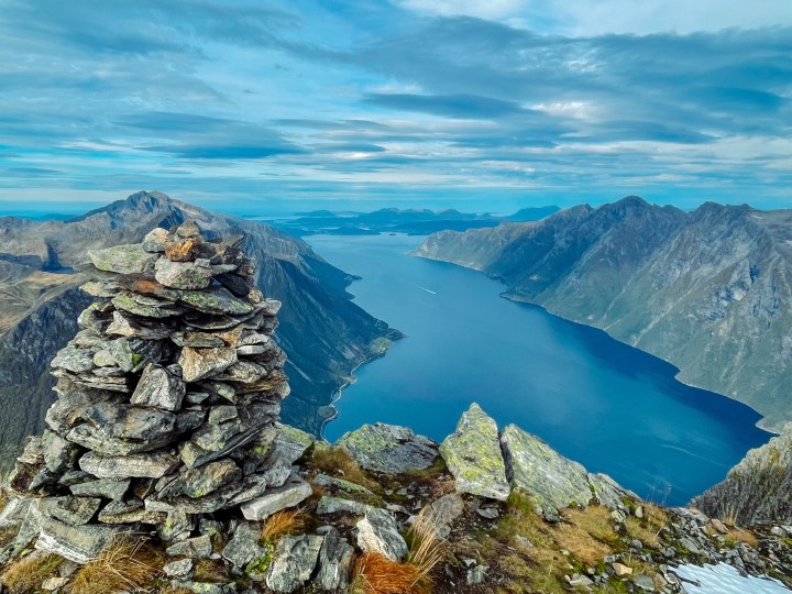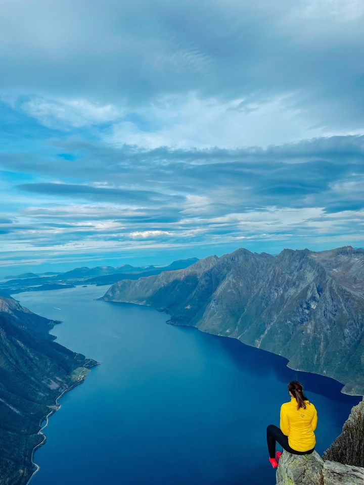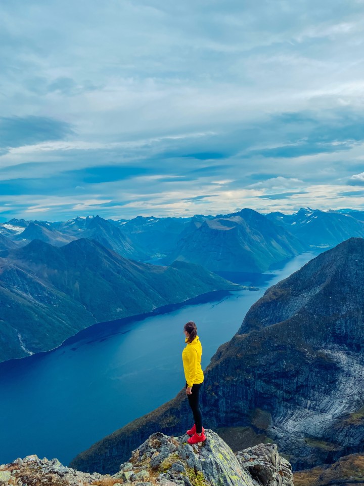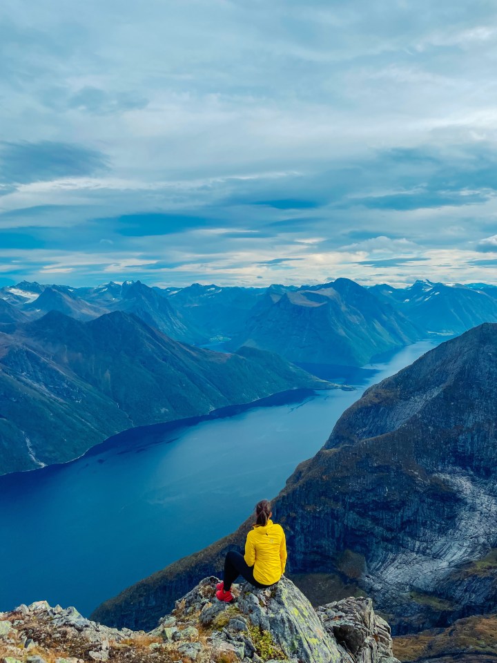 Toppen. Nydelig utsikt over Hjørundfjorden og Store-Standal rett nedenfor.