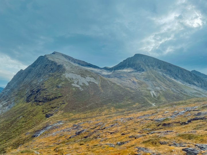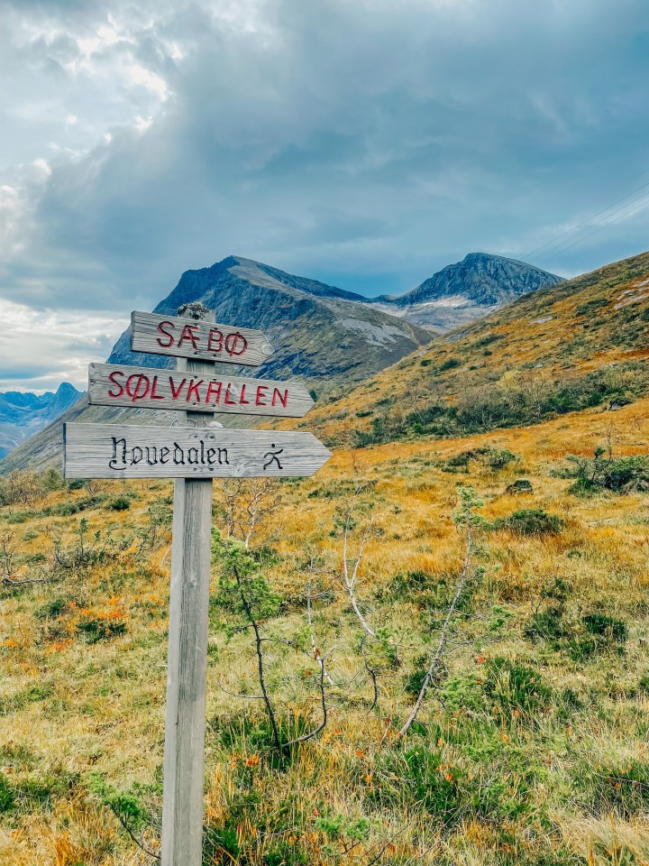 Oppe i Nøvedalen ser man tydelig resten av stien opp til toppen. Toppen er til venstre i bildet over her. Muligheter til å fylle vann når man krysser elven.
