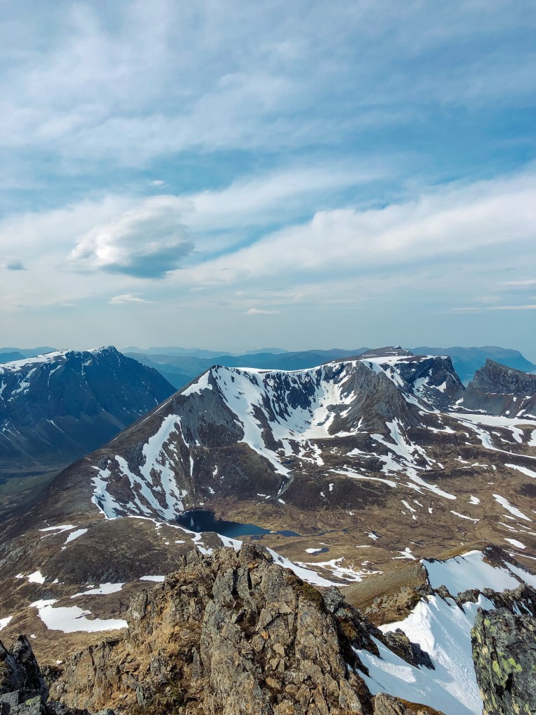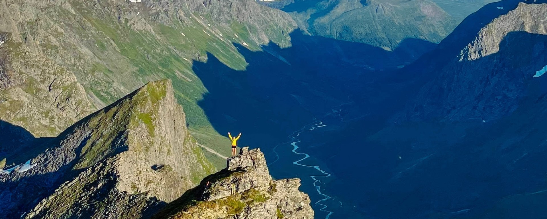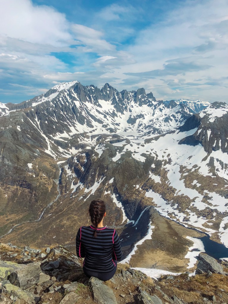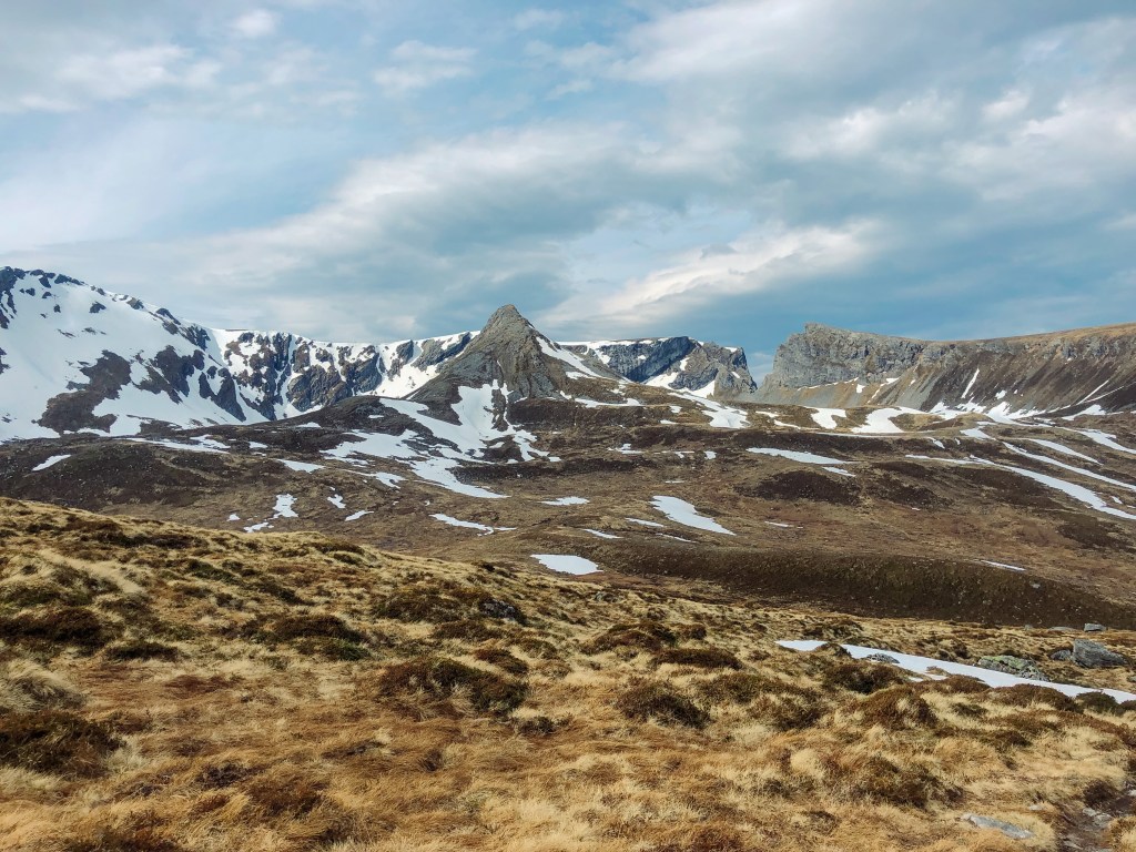 Middagshornet byr på fin utsikt mot Molladalen. Jønshornet/Ramoen strekker seg opp bak Molladalen.