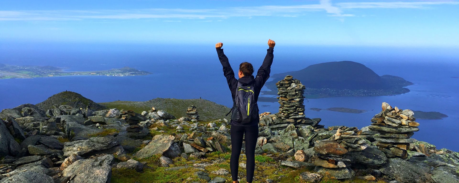 Det er grusvei hele veien til toppen, ca 5 km opp. I klart vær ser man Ålesund, Sula, Godøya,Valderøya og mer. //There is a gravel road leading all the way up to the summit, about 5 kilometers one way. In good weather you´ll see Ålesund, Sula, Godøya and Valderøya amongst other places.