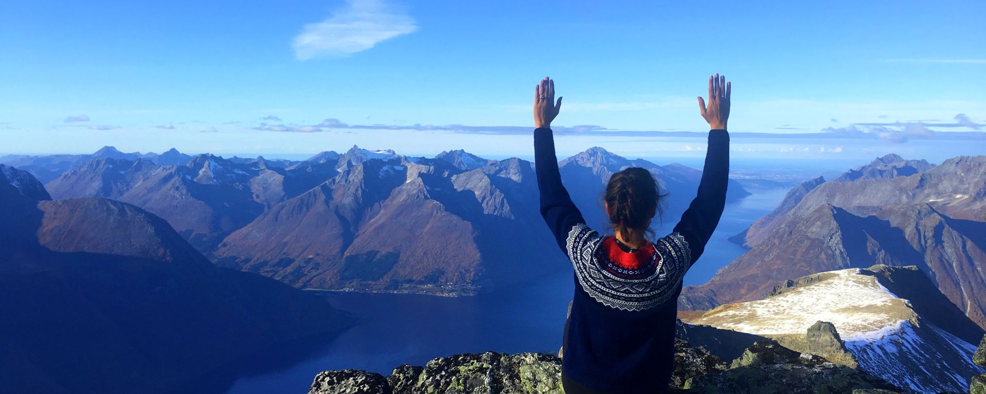 Værmeldingen sa at det fine været som hadde vart så lenge snart skulle ta en ende. Derfor var det bare å benytte sjansen å krysse enda en ny topp av listen. Det viste seg at vi kanskje skulle ha valgt en annen topp da vi gikk i skygge mesteparten av turen, noe som ble en KALD fornøyelse. Men som alltid ble det fort glemt når utsikten kom til syne. // Desperate to squeeze in one more “big” summit before the season ended, we opted for Mt Jakta this clear Autumn day at the end of October. In retrospect we should have chosen a different summit as we spent the majority of the hike in shadow and it was COLD. But it was worth it as always, and we were rewarded with an absolutely breathtaking view.