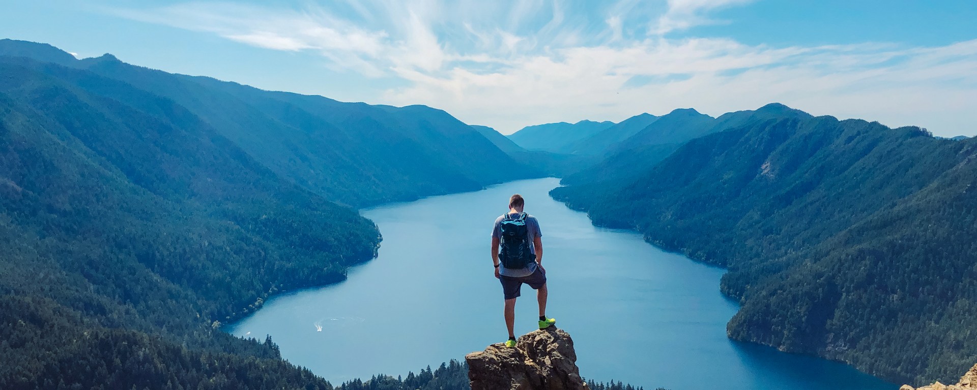 Fra toppen – nydelig utsikt over Lake Crescent og Juan de Fuca stredet.