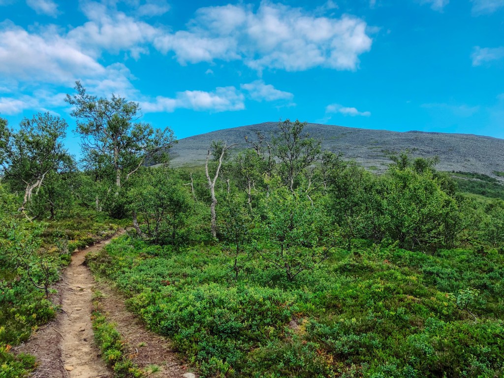 Oppe på ryggen, og nå ser vi toppen der fremme.