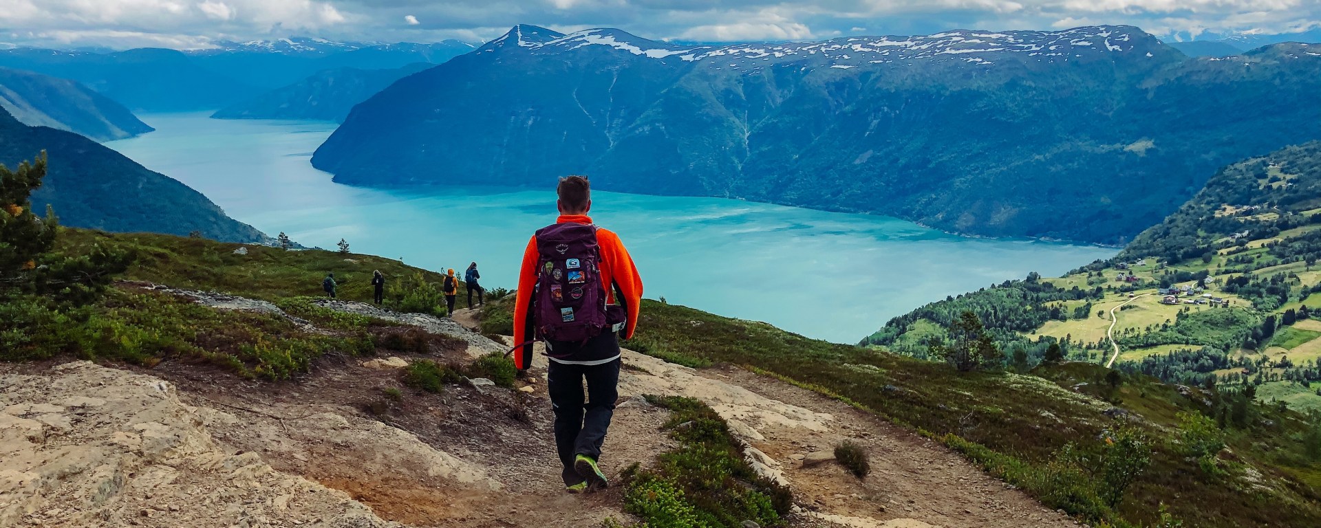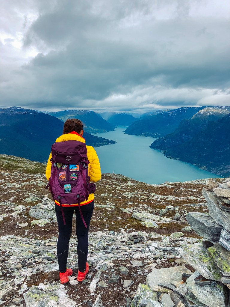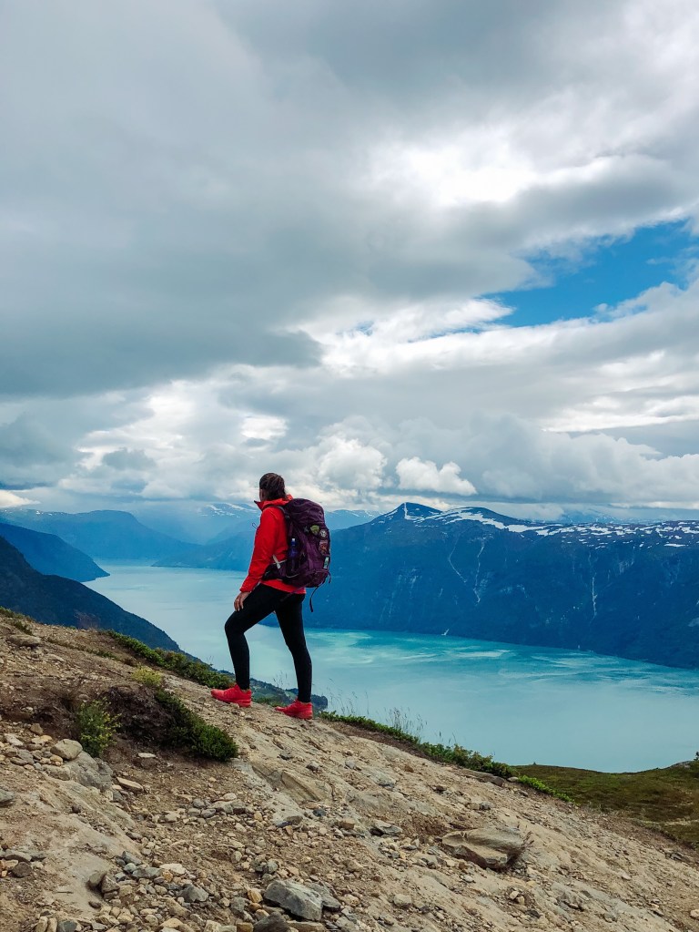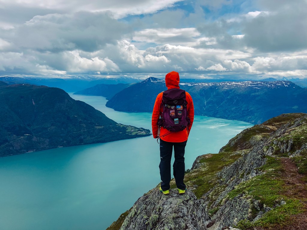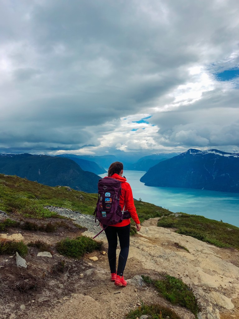 Den aller fineste utsikten finner du på øst sida av toppen. Høyt over Lustrafjorden og utsikt over til Ornes.