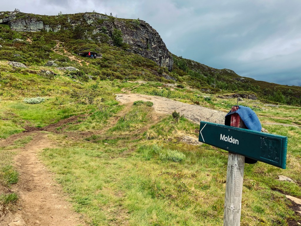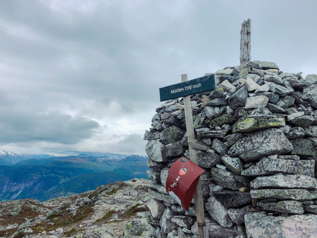 Toppvarden 1116 moh. Toppen av Molden er veldig stor, varden er på vestsiden av toppen.