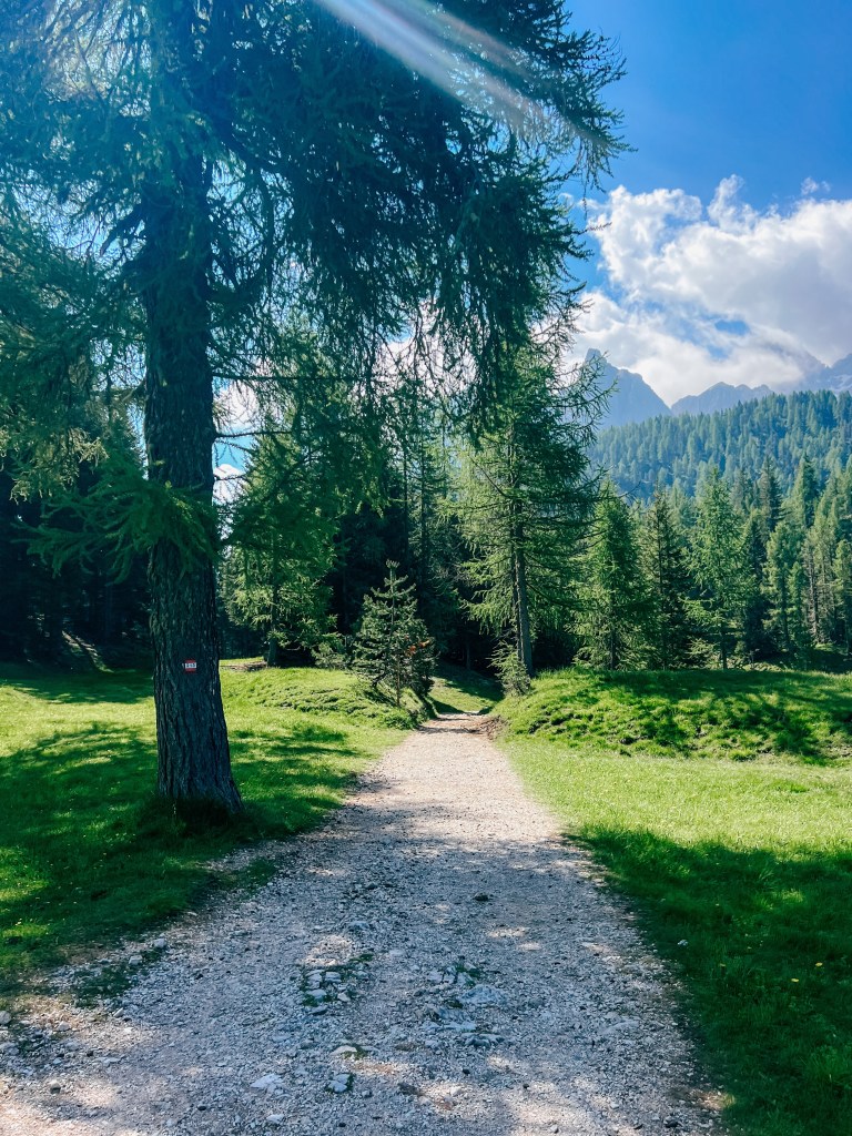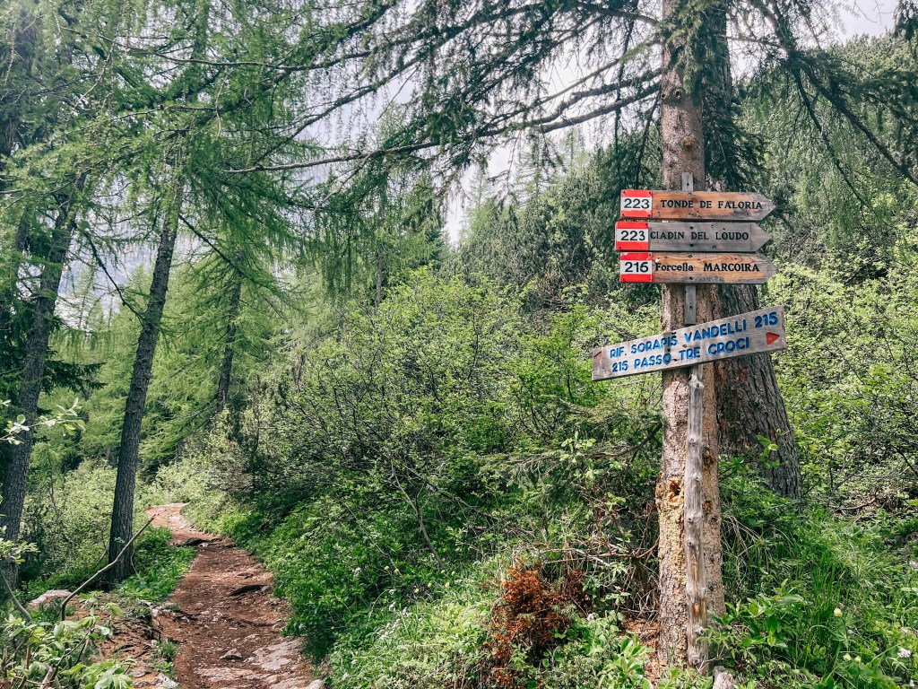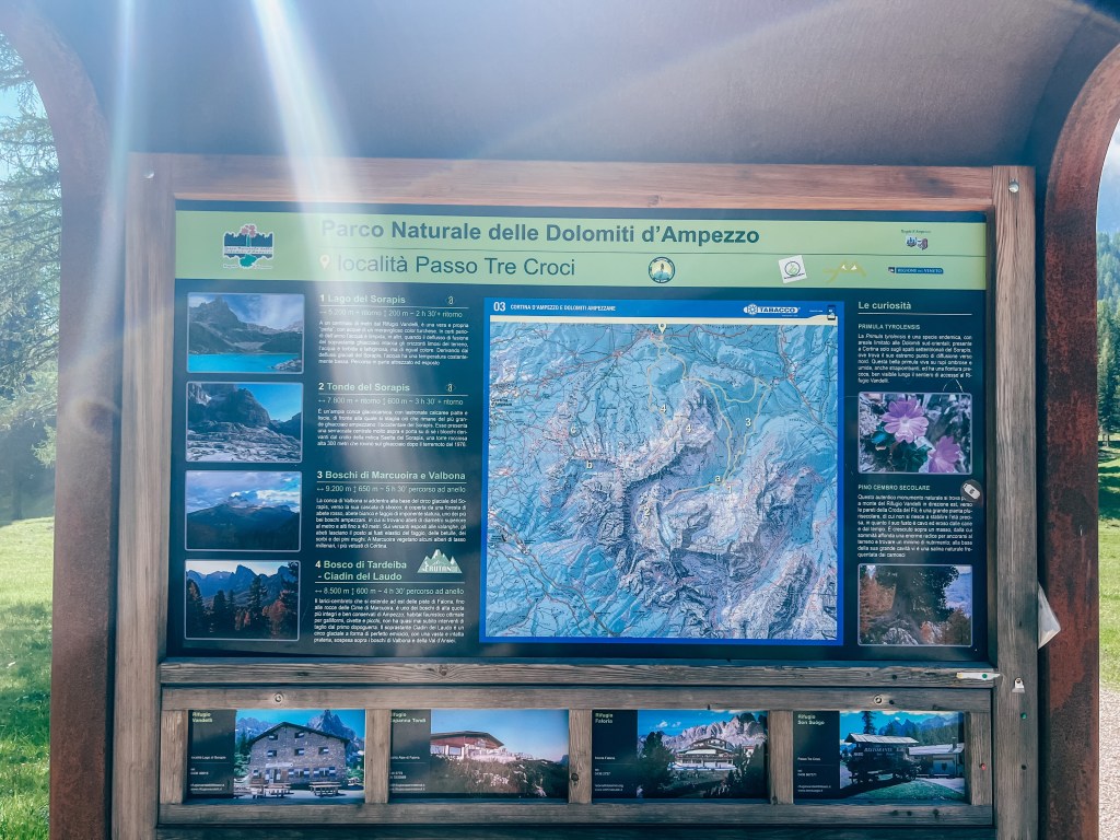 Trail 215 starter ved fjellpasset Passo Tre Croci, omtrent halvveis mellom Cortina d’ampezzo og Misurina. Vi bodde på B&B Hotel Passo Tre Croci, som ligger rett vedsiden av stien. Om du ikke overnatter i nærheten burde man være tidlig ute da det fyller seg raskt opp med biler på parkeringen.