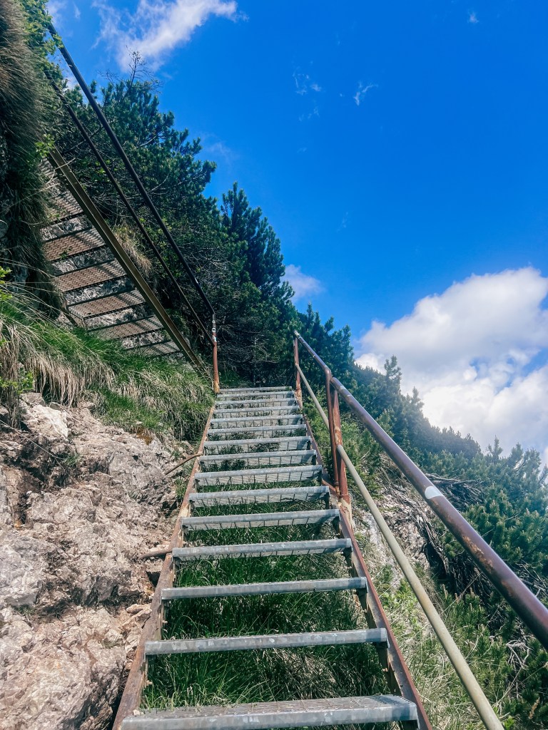 Etterhvert går stien langs en hylle. Tilrettelagt med kabler enkelte steder.