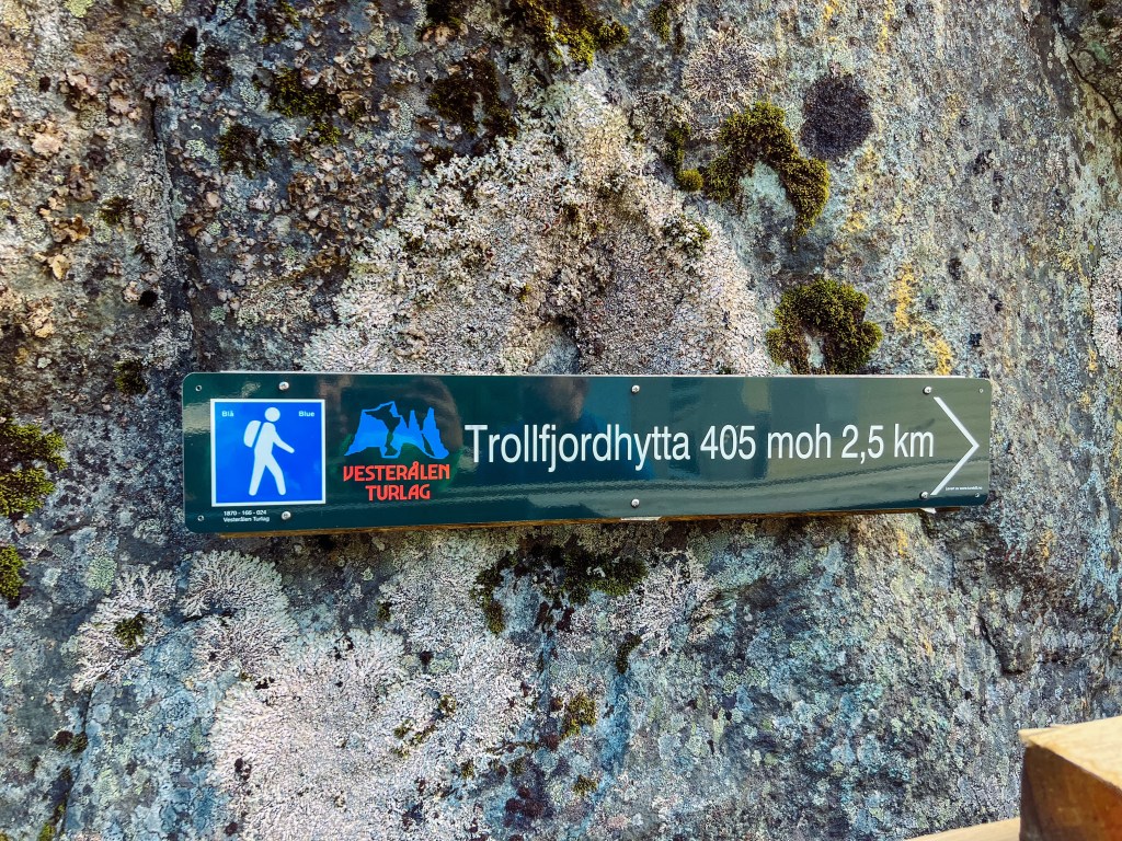 Etter ca 1,5 timer kommer Trollfjordhytta til syne.