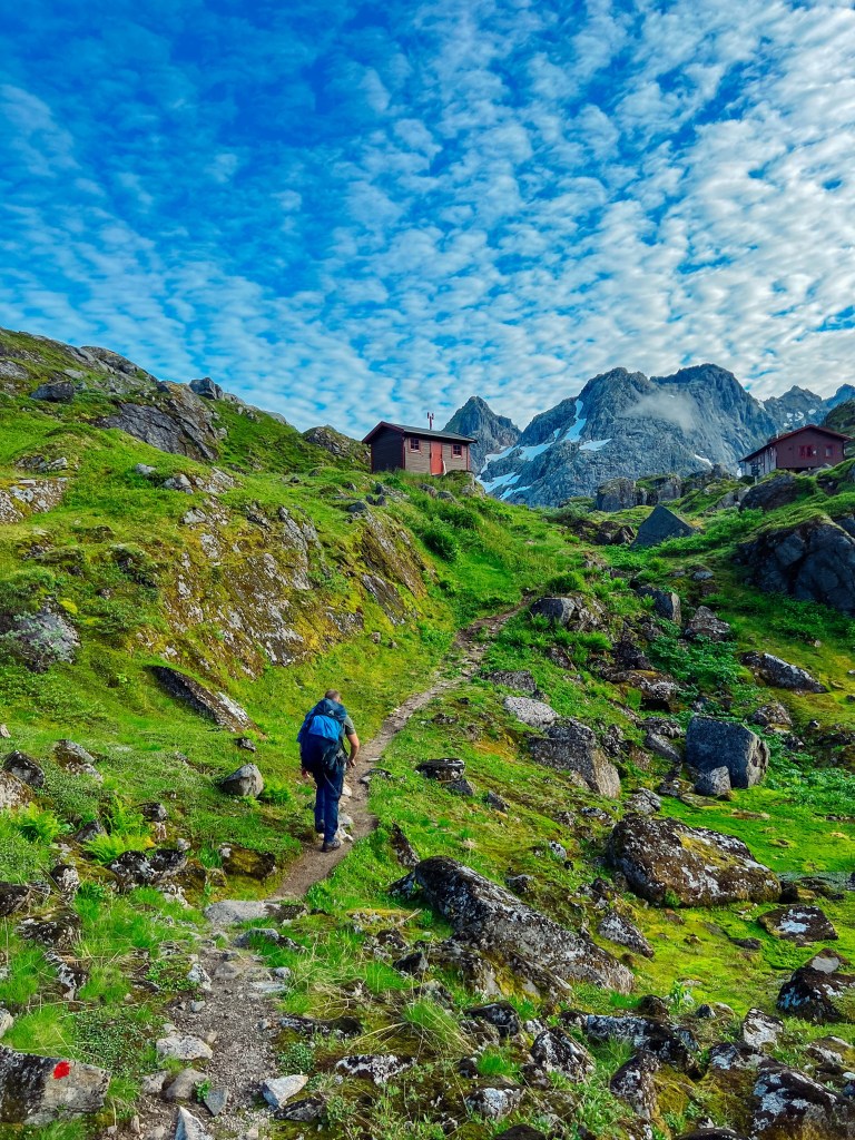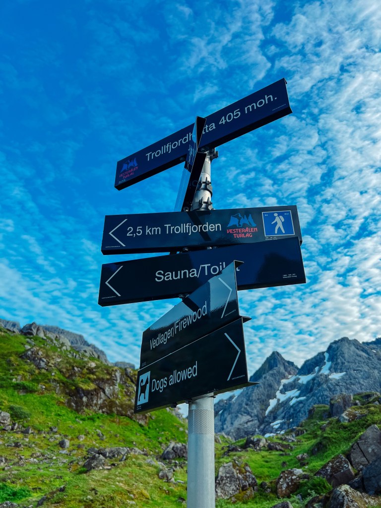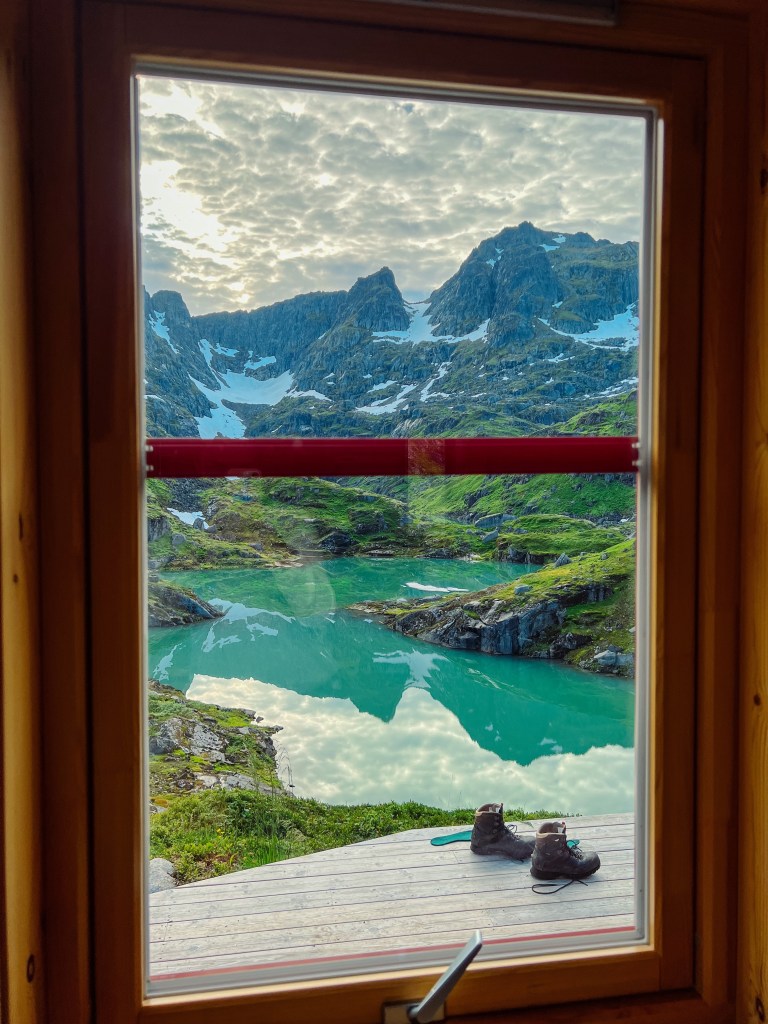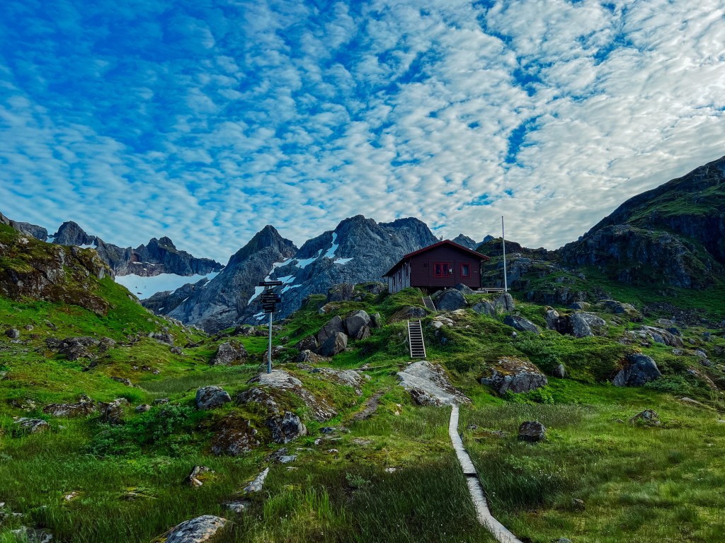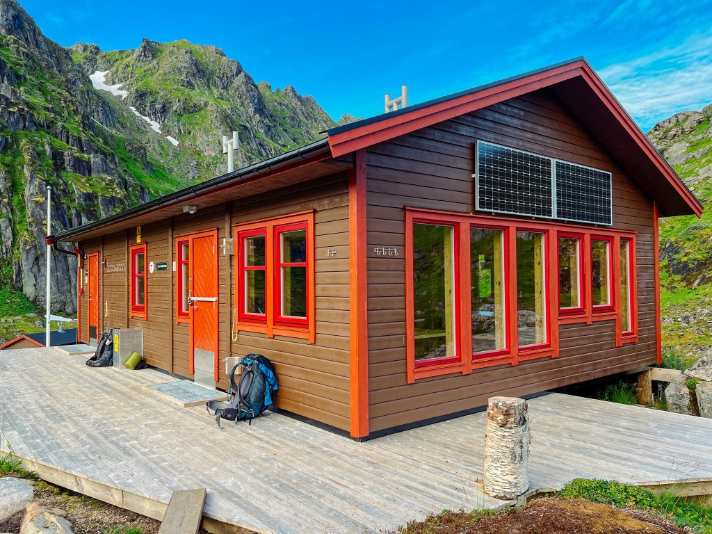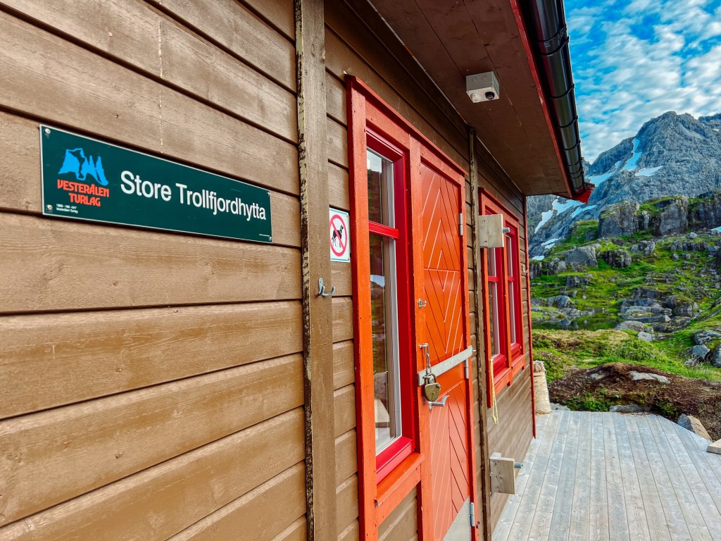 Vi hadde booket rom på Store Trollfjordhytta for natten. Denne hytta ble bygd i 2018, og er låst med DNT nøkkel.