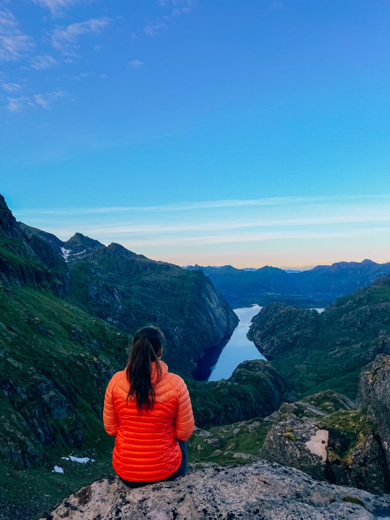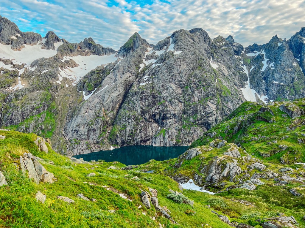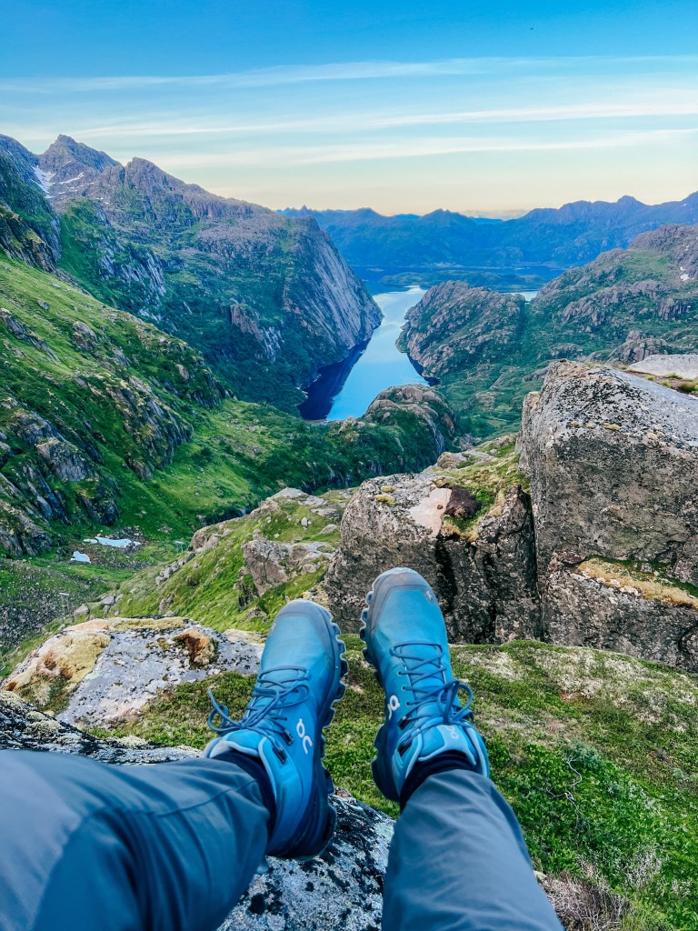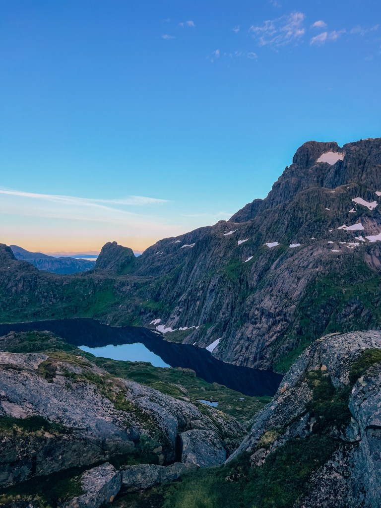 På vei ned igjen til Trollfjordhytta fra Isvasshaugen.