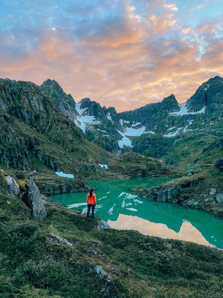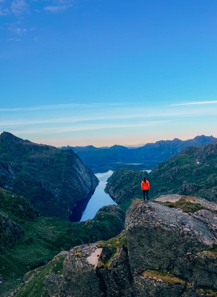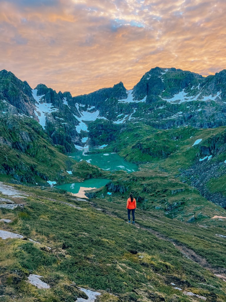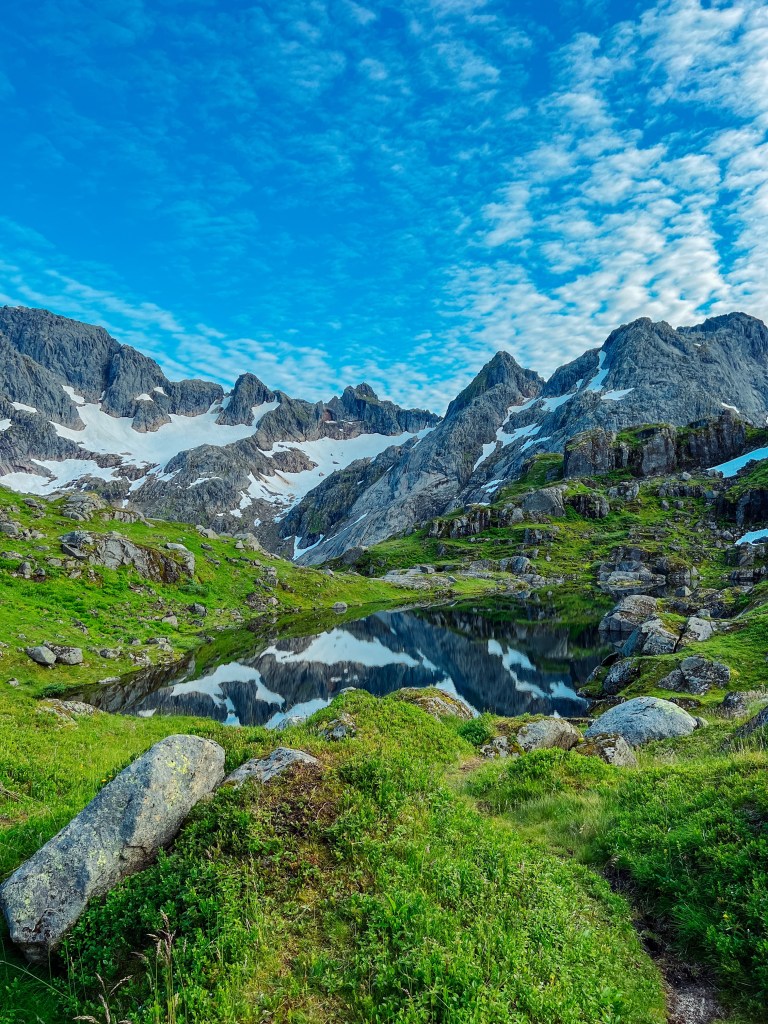 På vei ned igjen til Trollfjordhytta fra Isvasshaugen.
