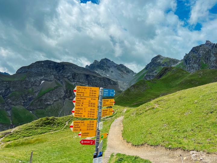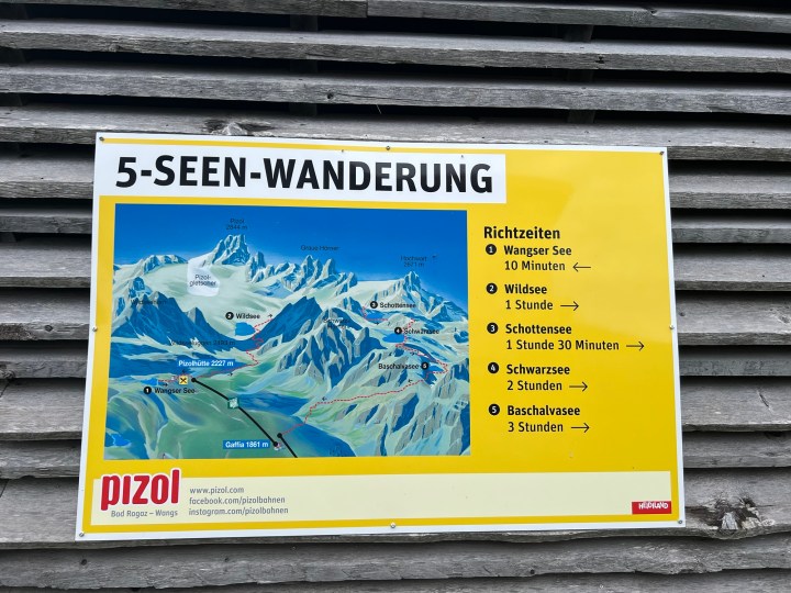 Fra Pizolhütte starter fjellturen, det er godt skiltet og enkelt å følge “5 seen wanderung”.