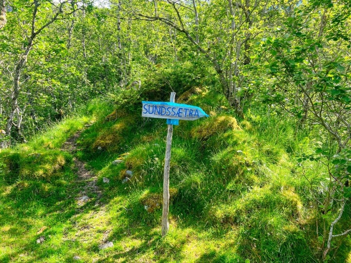 Etter ca 1,7 km så kommer man til Sundssætra. Her stoppet vi og kikket litt på utsikten før vi gikk videre.
