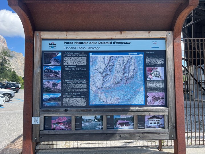 På veien går vi forbi flere innganger til Lagazuoi-grottene, som er et tunnelsystem i Dolomittene, opprinnelig gravd av italienske soldater under første verdenskrig for å angripe østerrikske stillinger. Tunellene i seg selv er et populært turistmål og det er også en via ferrata løype så man kan ta turen opp eller ned via disse tunellene. Det er da påbudt med hjelm, hodelykt og hansker, noe vi ikke hadde med oss så det får vi ha tilgode til en annen gang.