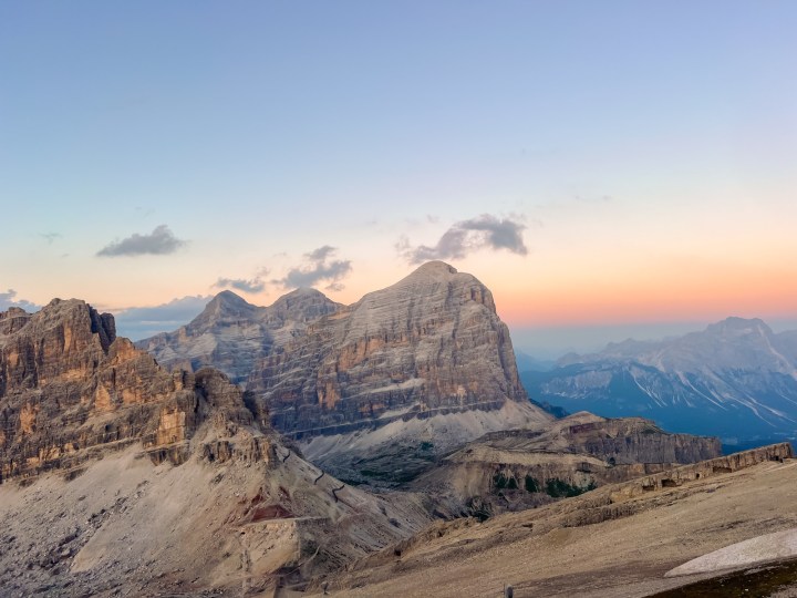Utsikt mot Refugio Lagazuoi på vei tilbake.