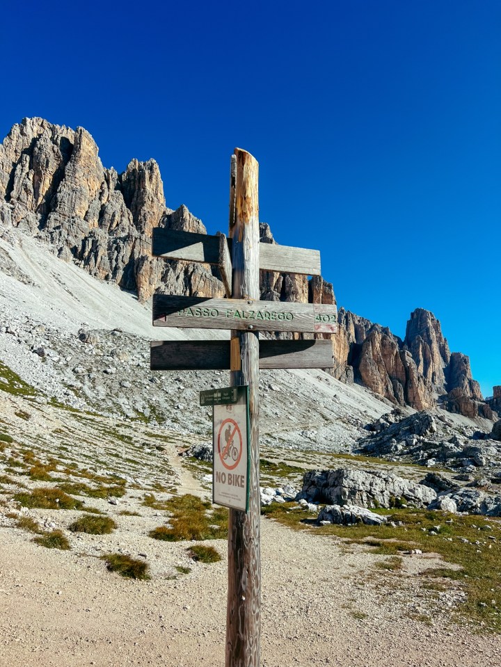 Godt med skilting overalt. Følg 402 mot Passo Falzarego ned igjen.
